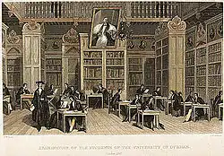 Épreuve d'examen en 1842 dans la bibliothèque de l’université de Durham (Cosin’s Library).