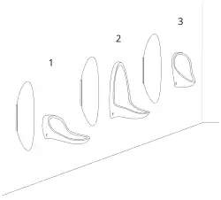 Urinoirs unisexes (no2) qui peuvent être utilisés par les hommes et les femmes, combinant les caractéristiques d'un urinoir féminin (no1) et masculin (no3) uniquement