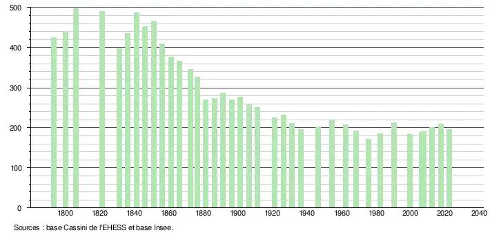 (Sources : Ldh/EHESS/Cassini jusqu'en 1999[30] puis Insee à partir de 2006[31].)