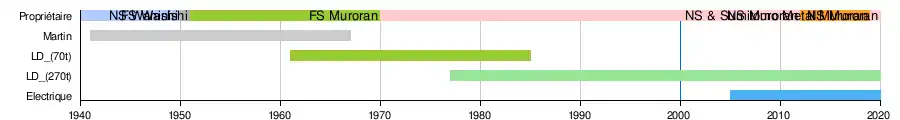 En , la fusion de Yahata Steel (en) avec Fuji Steel conduit à l'adoption du nom de Nippon Steel Muroran Steel Works[2].