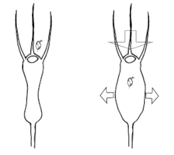 Les trappes, présentes par centaines, proportionnellement aux besoins en nutriments de la plante, sont d’origine foliaire[4]. Elles sont constituées de parois élastiques épaisses de deux couches de cellules et sont munies d’un « clapet ». Elles présentent 2 types de glandes. Tout d’abord les glandes quadrifides éparpillées sur l’ensemble de la surface interne qui ont pour but de sécréter les enzymes digestives et de réabsorber les nutriments, suivies des glandes bifides situées près du clapet de la trappe qui, elles, ont pour rôle d’évacuer l’eau en dehors des outres de manière à créer la dépression qui sera à l’origine de l’activation de la trappe [3].