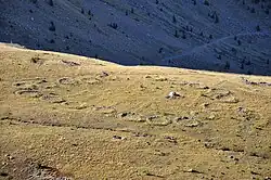 - ↑ Maurice Jorda, Cécile Miramont, « Les Hautes Terres : une lecture géomorphologique du paysage et de ses évolutions », in Nicole Michel d’Annoville, Marc de Leeuw (directeurs) (photogr. Gérald Lucas, dessin. Michel Crespin), Les Hautes Terres de Provence : itinérances médiévales, Le Caire : Association Les hautes terres de Provence ; Saint-Michel-l'Observatoire : C'est-à-dire, 2008, 223 p. (ISBN 978-2-952756-43-3). p. 33.