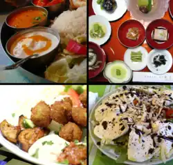 Le végétarisme en Inde est répandu et a engendré des méthodes commerciales originales ; l'Inde, pays peuplé par plus d'un milliard d'habitants, est aussi celui où le pourcentage de la population végétarienne est le plus important. Beaucoup de restaurants en Inde se distinguent clairement – ainsi que les marchés –, comme étant « non-végétariens », « végétariens » ou « purs végétariens » (ce qui fait référence au régime lacto-végétarien). Selon le Hindu-CNN-IBN de 2006[110], 31 % des Indiens sont lacto-végétariens, et 9 % sont lacto-ovo-végétariens : d'après cette étude, 40 % des Indiens sont donc végétariens dans le sens occidental du terme (pas de chair animale), soit environ 500 millions de personnes (autant que la population de l'Union européenne) ; une étude de 2018 ramène cependant ce chiffre à 20 % car la proportion de ménages consommant de la viande est en augmentation[108]. Parmi toutes les communautés, le végétarisme est le régime le plus répandu chez les hindous avec presque 50 % de pratiquants[117] (chez les jaïns, il est obligatoirement à 100 %) et le moins fréquent, respectivement, chez les musulmans (3 % de végétariens), les chrétiens (8 % de végétariens) et les habitants des zones côtières, consommateurs de poissons.