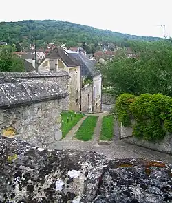 Les maisons du village s'étagent au flanc du coteau dominant la Seine.