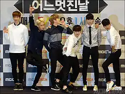 De gauche à droite : Hyuk, Ravi, Hongbin, Ken, Leo et N