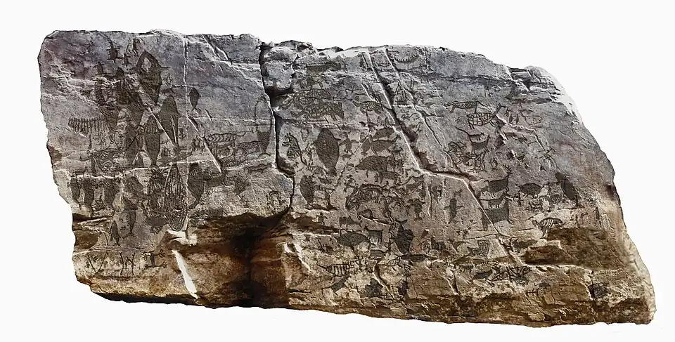 - Vers 5500-3300 av. J.-C. : phase camunienne des gravures rupestres du Val Camonica, dans la province de Brescia, dans le Nord de l'Italie (périodes I et II). Le style des pétroglyphes change radicalement avec l’arrivée d’une population néolithique d’agriculteur et d’éleveurs. Les sujets principaux des représentations ne sont plus les animaux sauvages des chasseurs du mésolithiques, mais des représentations humaines stylisées, des animaux domestiques (chiens, bœufs et chèvres), des charrues dans les dernières phases de la période II[56].