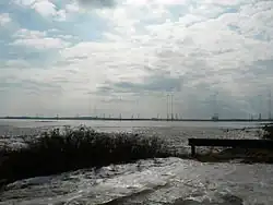Gros plan de quelques-unes des tours d'antenne de l'émetteur VLF de Cutler. | |||