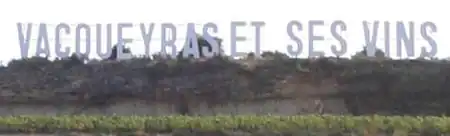 Inscription signalant l'entrée dans le terroir de Vacqueyras. | |