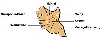 Six communes étaient regroupées dans la communauté d'agglomération de Marne-la-Vallée - Val Maubuée jusqu'en 2015 :