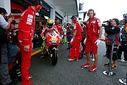 Le , lors du Grand Prix de Saint-Marin, à Misano, Rossi renoue avec la victoire pour la première fois depuis le GP d'Assen en 2013[74]. Il offre ainsi à Yamaha sa première victoire de la saison. À l'occasion de cette course, Rossi devient le premier pilote à franchir la barre des 5 000 points marqués en Grand Prix moto.