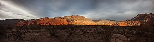 Au sud, la limite des vallées est marquée par le plateau de l'Abra del Infernillo (littéralement "le passage du petit enfer"), qui, à 3 042 mètres d'altitude, connecte les vallées Calchaquíes à la Vallée de Tafí.
