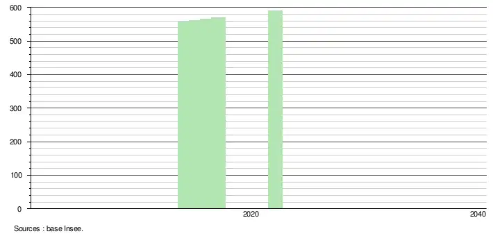 En 2022, la commune comptait 590 habitants[Note 2], en évolution de +4,24 % par rapport à 2016 (Aisne : −1,97 %, France hors Mayotte : +2,11 %).