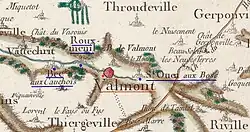 La carte de Cassini ci-contre montre qu'au milieu du XVIIIe siècle, Valmont est un bourg situé sur la Valmont.
