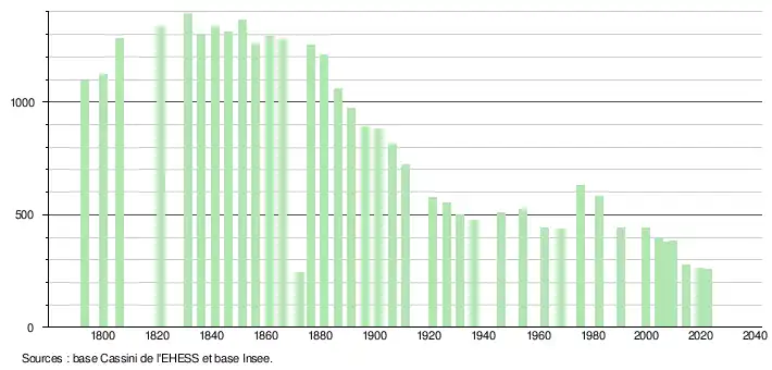 - ↑ Fiches Insee - Populations de référence de la commune pour les années 2006, 2007, 2008, 2009, 2010, 2011, 2012, 2013, 2014, 2015, 2016, 2017, 2018, 2019, 2020, 2021 et 2022.