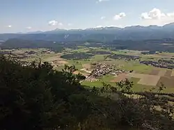 Vassieux vue des pentes du col de la Chau, près du Mémorial de la Résistance. | |||||