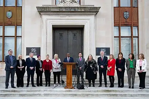 79. 1 2 (en) « Mark Drakeford overhauls cabinet as Vaughan Gething replaced as health minister », ITV News, ITV X, (lire en ligne).