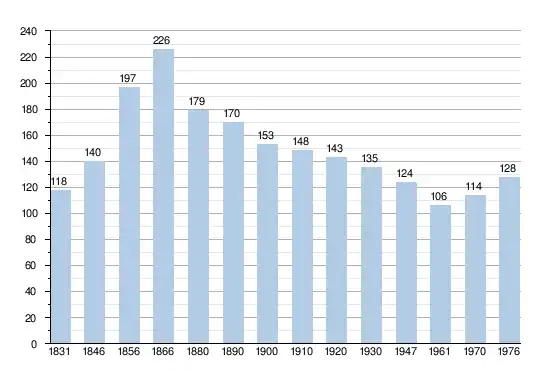 - Sources : INS, Rem. : 1831 jusqu'en 1970 = recensements, 1976 = nombre d'habitants au 31 décembre.