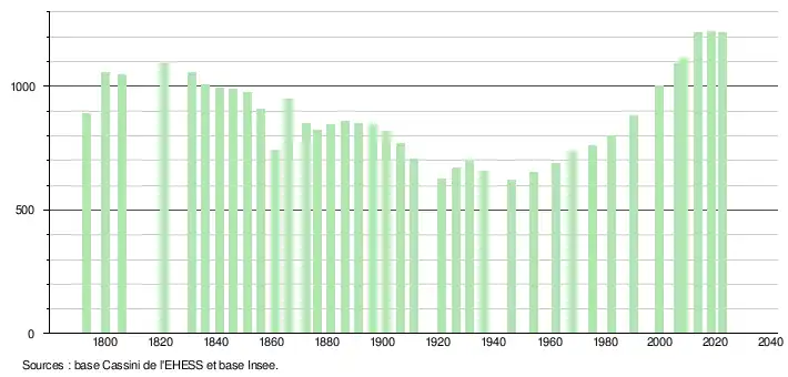 - ↑ Fiches Insee - Populations de référence de la commune pour les années 2006, 2007, 2008, 2009, 2010, 2011, 2012, 2013, 2014, 2015, 2016, 2017, 2018, 2019, 2020, 2021 et 2022.