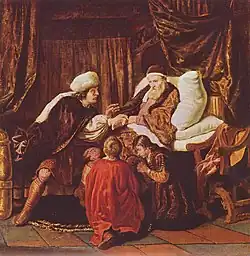 Jacob, âgé de 147 ans, sent sa fin approcher, et demande à bénir ses successeurs ; d'abord les fils de Joseph, en commençant, au grand étonnement de celui-ci, par le cadet Éphraïm ; ensuite ses fils dans un langage poétique contenant de nombreuses allusions à leur avenir et à la fin des temps. Il demande ensuite à être enterré avec ses pères à Hébron dans le tombeau des Patriarches au côté de sa femme Léa. Un immense cortège funèbre l'y accompagne, impressionnant les Canaanéens.