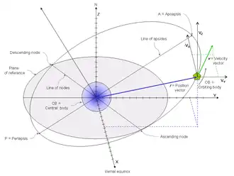 Les vecteurs d'états orbitaux sont définis par rapport à un référentiel, en général mais pas toujours un référentiel galiléen. Pour les objets en orbite autour de la Terre, le référentiel galiléen centré autour de la Terre Earth-centered inertial (ECI) est défini[1]:23 :