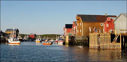 La partie sud-ouest de l'île est montagneuse, le point culminant étant le Trollvasstinden de 803 mètres de haut. Le reste de l'île est plutôt plat et marécageux.