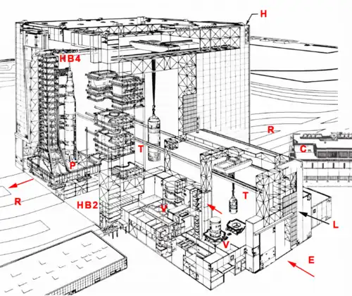 - ↑ Au moment de la conception du bâtiment, le scénario prévu pour une mission lunaire impliquait deux lancements dans un délai très court de fusées Saturn V et un assemblage en orbite terrestre des deux charges utiles satellisées. Ce scénario sera abandonné fin 1962.