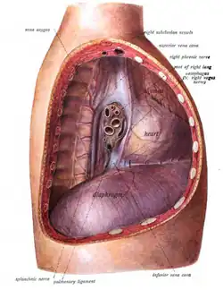 La veine azygos (du grec ἄζυγος / ázugos, « non soumis au joug, d'où non conjugal »[1]), anciennement grande veine azygos, est une veine du thorax qui est formée à partir de deux veines issues de l'abdomen, longe la colonne vertébrale et se jette dans la veine cave supérieure. Elle draine principalement la paroi postérieure du thorax. Elle constitue une anastomose entre les systèmes caves inférieur et supérieure.