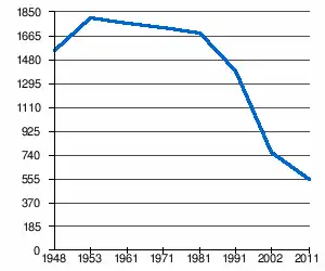 | 1 549 | 1 800 | 1 764 | 1 730 | 1 689 | 1 393 | 757[2] | 552[1] |