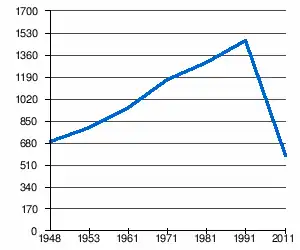 - 1 2 (sq) « Évolution de la population 1948-2011 », sur pop-stat.mashke.org (consulté le ).