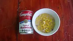 - (en) Cet article est partiellement ou en totalité issu de l’article de Wikipédia en anglais intitulé « Cream of mushroom soup » (voir la liste des auteurs).