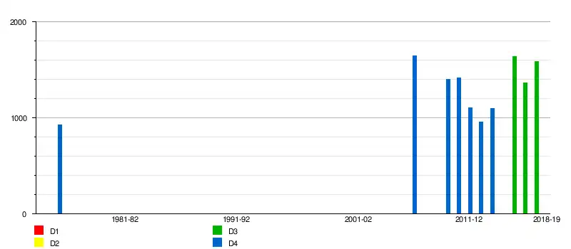 | Saison | 1969-1970 | ... | 2011-2012 | 2012-2013 | 2013-2014 | 2014-2015 |