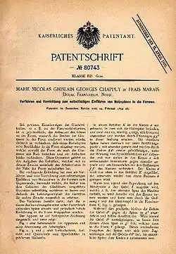Georges Chappuy invente et teste en 1900 un transporteur à bouteilles et autres objets en verre à l'état incandescent depuis la place où ils sont façonnés jusqu'au four à recuire[6]. Cet investissement permettra de réduire le travail des enfants.