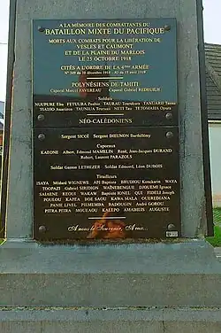 Stèle commémorant le bataillon mixte du Pacifique.