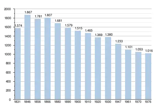 - Sources : INS, Rem. : 1831 jusqu'en 1970 = recensements, 1976 = nombre d'habitants au 31 décembre.
