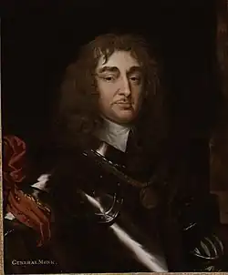 Portraits de Charles II d'Angleterre et George Monck. L'héritier du souverain déchu et le général victorieux se réconcilient sous l'égide d'Athos et de d'Artagnan, artisans français de la Restauration Stuart. | ||