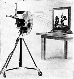 Dès l'apparition de la télévision et longtemps avant que les prototypes de téléviseurs cathodiques ne soient produits, le principe de la vidéoprojection est non seulement conçu mais réalisé, pour produire et afficher des images devant être partagées par plusieurs spectateurs.
