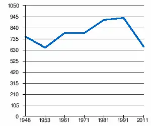 - 1 2 (sq) « Évolution de la population 1948-2011 », sur pop-stat.mashke.org (consulté le ).