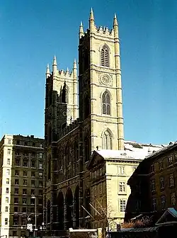 La Basilique Notre-Dame de Montréal : la façade date de 1830