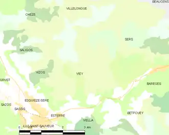 La commune de Viey se trouve dans le département des Hautes-Pyrénées, en région Occitanie[I 1].