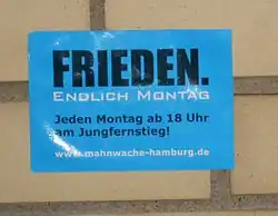- ↑ Mohamed Amjahid, Sabine Beikler, Jörn Hasselmann und Steffen Stadthaus: Neue Montagsdemos Friedensbewegung mit Brauntönen. In: Tagesspiegel vom 21. April 2014 (online, Zugriff am 18. Juni 2014).