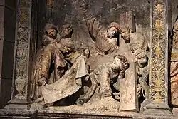 Retable de la passion de Ligier Richier dâté de 1523 situé dans la Collégiale Saint-Maur d'Hattonchâtel[53].