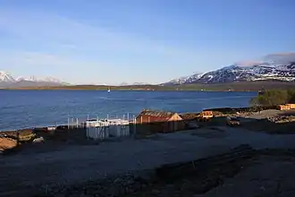 Vue sur Vikran depuis Larseng, de l'autre côté du Straumsfjord.