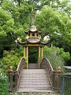 - ↑ Carmontelle , Prospectus (1779), évoqué dans Grandes et petites heures du Parc Monceau, Paris: Musée Cernuschi, 1982, p. 19, n° 44. Cité d'après Philippe Junod, « De l'utopie à l'uchronie. Pour une archéologie de l'imaginaire jardinier », dans: Philippe Junod, Chemins de traverse. Essais sur l'histoire des arts (Études lausannoises d'histoire de l'art, 6), Infolio 2007, (ISBN 978-2-88474-526-0), p. 436.