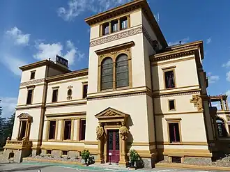La villa de 2 700 m2[5] possède de nombreuses pièces, dont une bibliothèque, une salle de billard dont le plafond est peint par Louis Bardey, et une chapelle habillée des frises du peintre Jean-Baptiste Poncet[2]. Le grand escalier est orné de vitraux de Lucien Bégule[6].