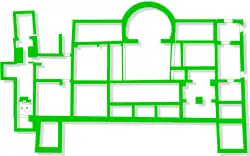 Le sanctuaire païen d'origine était dédié aux divinités locales de l'eau, et une peinture murale représentant trois nymphes d'eau datant de cette période peut encore être vue dans une niche de la pièce[18].