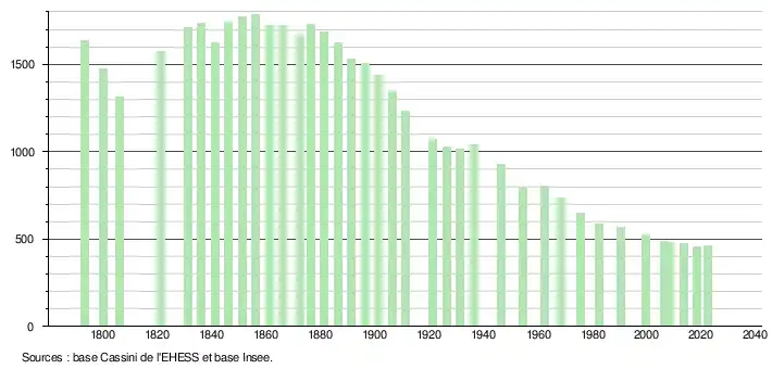 - ↑ Fiches Insee - Populations de référence de la commune pour les années 2006, 2007, 2008, 2009, 2010, 2011, 2012, 2013, 2014, 2015, 2016, 2017, 2018, 2019, 2020, 2021 et 2022.