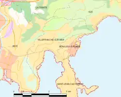 Séparée de Nice dont elle est limitrophe par le mont Boron, le mont Alban et le mont Vinaigrier et distante d’environ 10 km de Monaco, la ville s’étale en gradin sur les flancs de la rade de Villefranche, un des mouillages naturels les plus profonds de la Méditerranée occidentale.