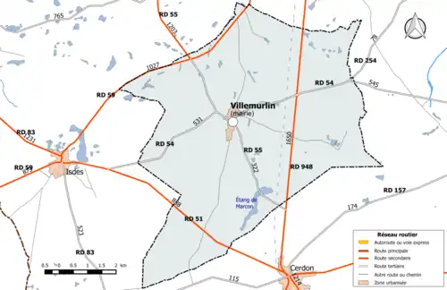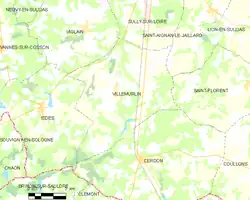 Carte de la commune de Villemurlin et des communes limitrophes.