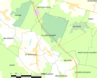 Au , Villers-Robert est catégorisée commune rurale à habitat dispersé, selon la nouvelle grille communale de densité à sept niveaux définie par l'Insee en 2022[8]. Elle est située hors unité urbaine[9]. Par ailleurs la commune fait partie de l'aire d'attraction de Dole, dont elle est une commune de la couronne[Note 2],[9]. Cette aire, qui regroupe 87 communes, est catégorisée dans les aires de 50 000 à moins de 200 000 habitants[10],[11].