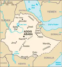 (de)/(en) Cet article est partiellement ou en totalité issu des articles intitulés en allemand « Liste der Städte in Äthiopien » (voir la liste des auteurs) et en anglais « List of Cities and Towns in Ethiopia » (voir la liste des auteurs).